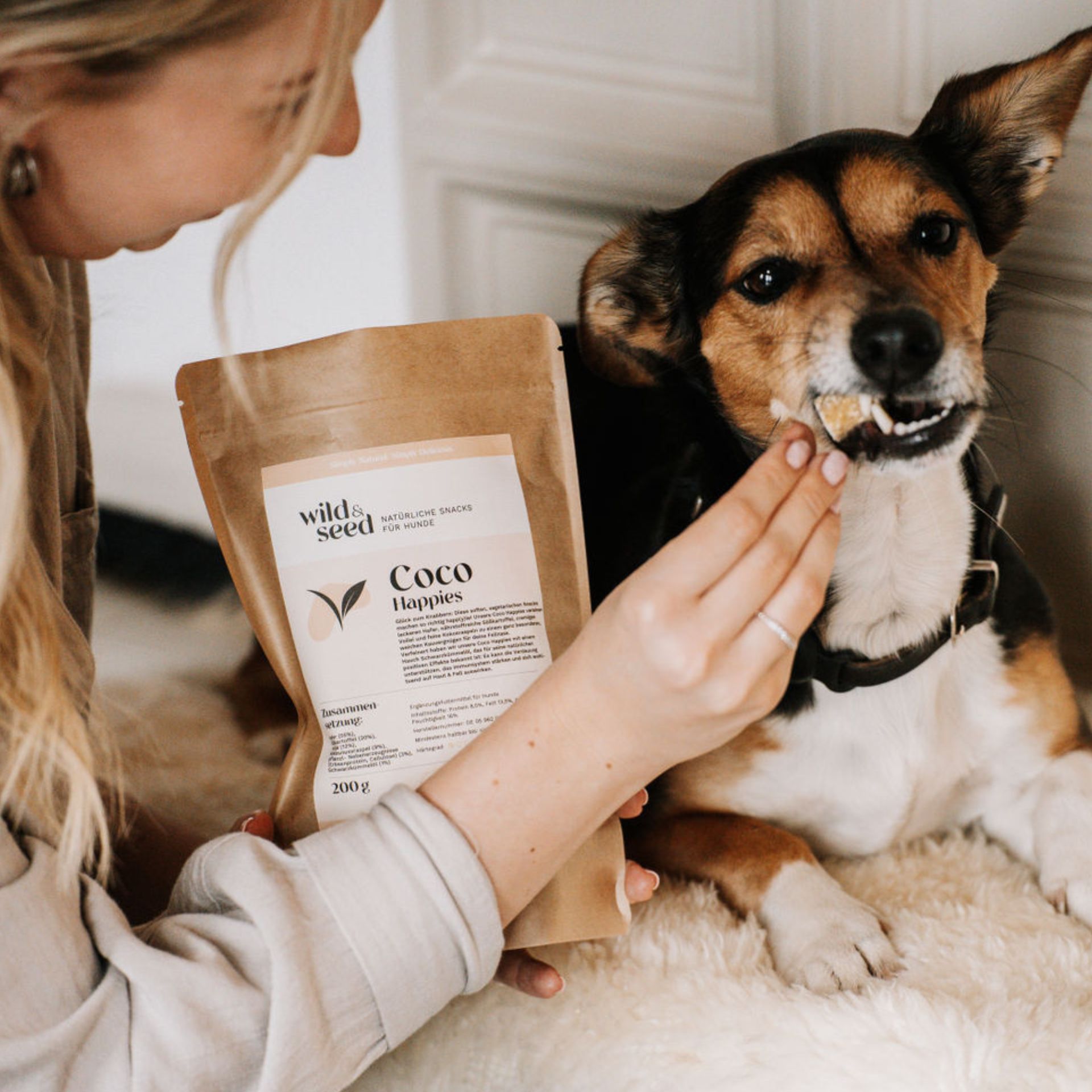 "Unsere Coco Happies sind ein weicher, gut verträglicher vegetarischer Softsnack für Hunde jeder Größe. Ich liebe die Kombination aus natürlichen Ballaststoffen, pflanzlichen Eiweißen und Laurinsäure, die die Verdauung unterstützen und Haut, Fell und Wohlbefinden sanft fördern können."