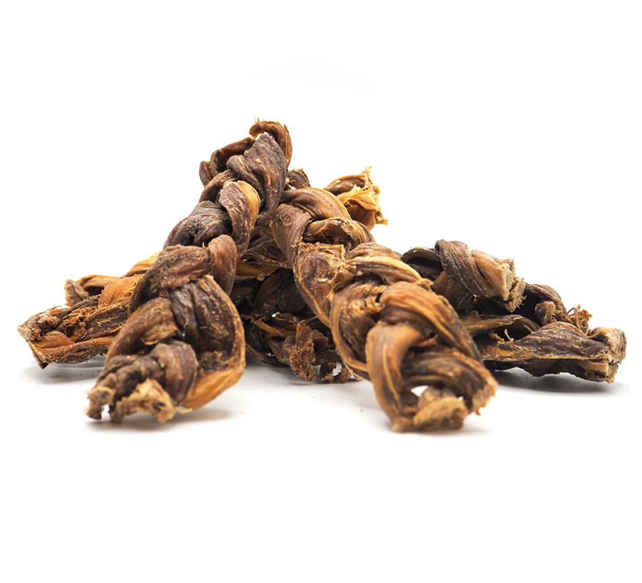 Unsere Dörrfleisch-Zöpfe bestehen aus 100 % getrocknetem Schlundfleisch und bieten natürlichen Kauspaß mit praktischem Effekt. Die geflochtene Form kann beim Kauen helfen, Zahnbelag zu reduzieren - ganz ohne künstliche Zusätze. Proteinreich, aromatisch und durch die feste Struktur ideal zur täglichen Zahnpflege geeignet.