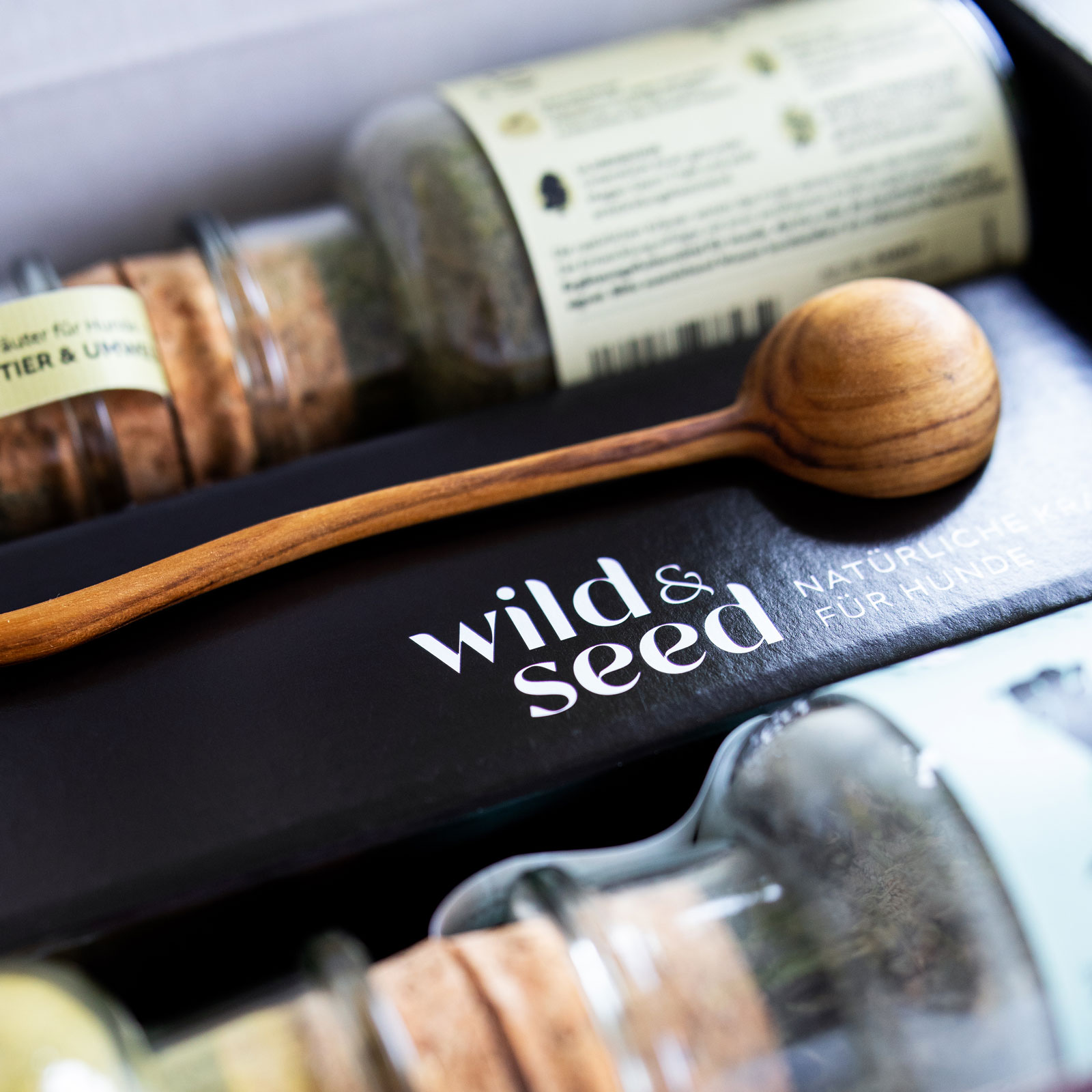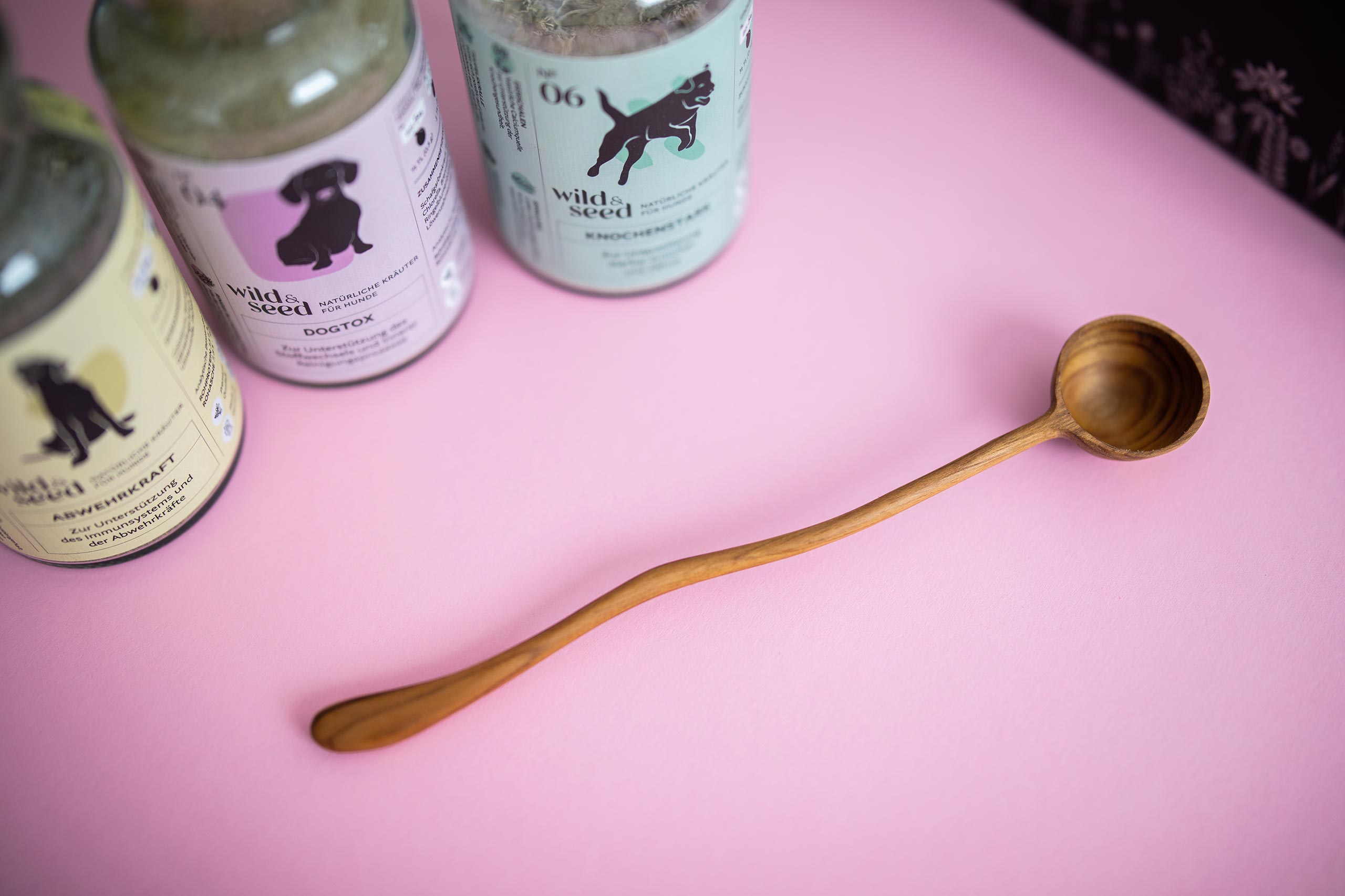 Hinweis: Bitte beachten Sie, dass der Portionierlöffel von wild & seed ausschließlich für die Verwendung mit Nahrungsergänzungsmitteln für Hunde vorgesehen ist. Verwenden Sie ihn nicht für andere Zwecke. Stellen Sie sicher, dass Sie die Dosierungsanweisungen der jeweiligen Nahrungsergänzungsmittelhersteller befolgen.