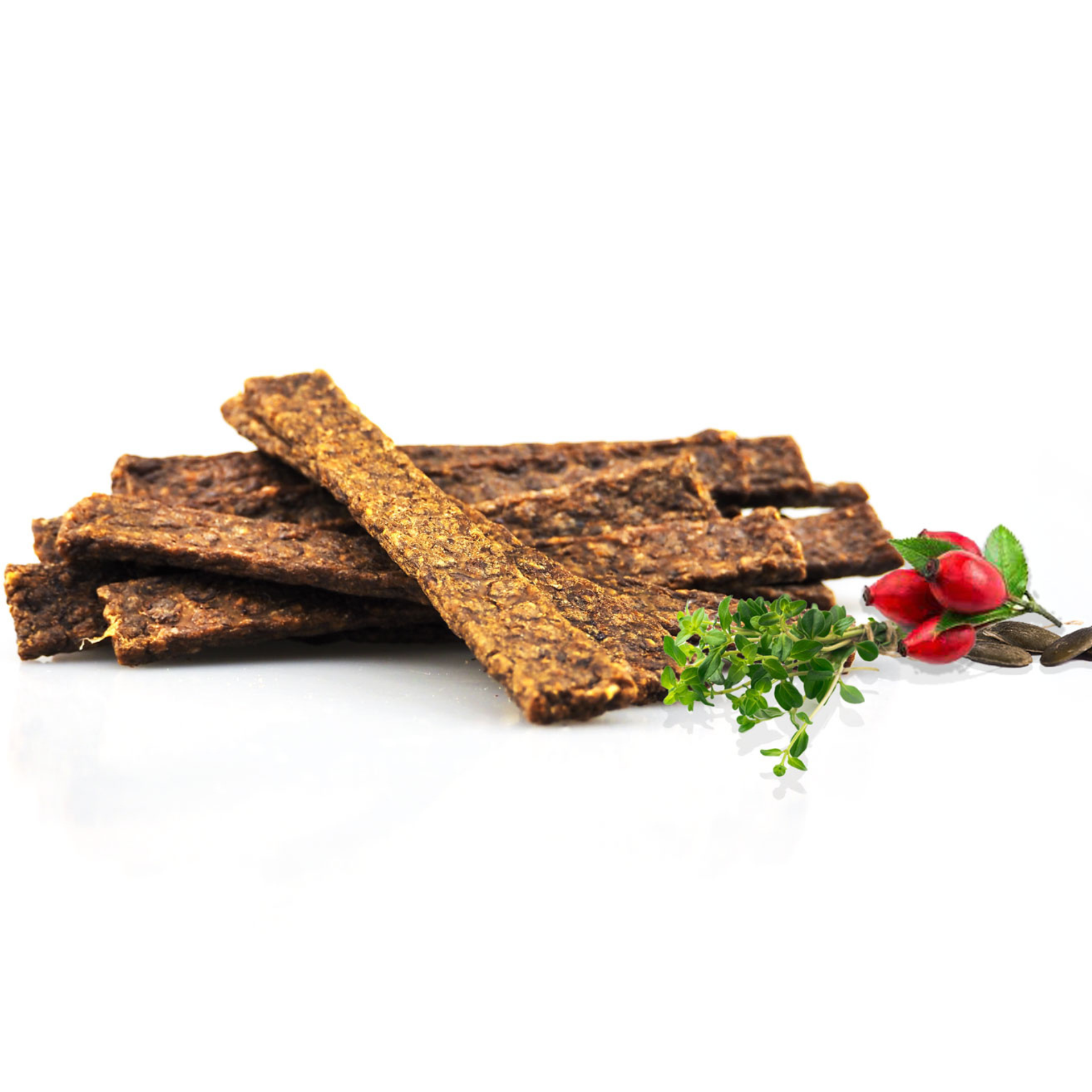 Unsere Streifen bestehen fast ausschließlich aus hochwertigem Putenfleisch (96%) – klar, mager und sehr gut verträglich. Die sorgfältig ausgewählte Kräutermischung rundet den Snack nicht nur geschmacklich ab, sondern bringt auch sanfte, natürliche Unterstützung durch ausgewählte Pflanzen.