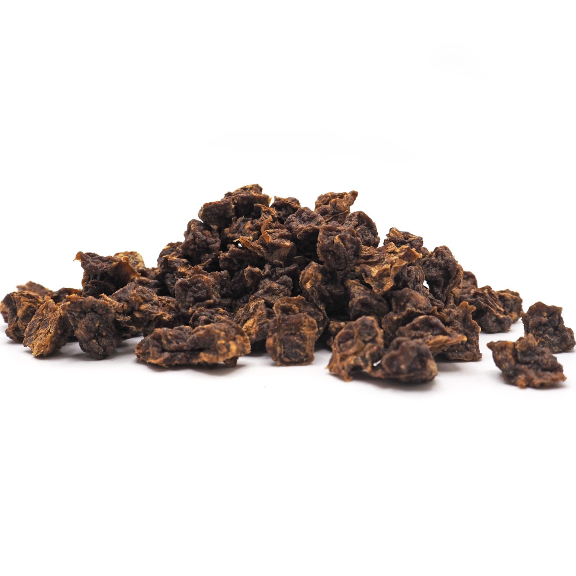 Für die kleinen Würfel verwenden wir nahezu ausschließlich reines Rehfleisch aus regionaler Herkunft. Durch eine besonders schonende Trocknung bleibt der charakteristische Geschmack ebenso erhalten wie die wertvollen Nährstoffe. Ein Hauch pflanzlichen Glycerins aus Kokos – gerade einmal 1 % – sorgt für die weiche, leicht kaubare Struktur. So lassen sich die Snacks mühelos einsetzen und eignen sich ideal fürs Training, für Spaziergänge oder einfach als kleine Aufmerksamkeit zwischendurch. Da sie komplett ohne Getreide auskommen, sind sie zudem eine hervorragende Option für Hunde mit Allergien oder empfindlichem Magen.