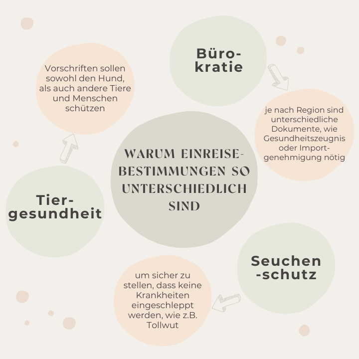 Die Anforderungen für die Einreise mit Hunden variieren stark, je nachdem, welches Land du besuchen möchtest. Diese Unterschiede beruhen auf: